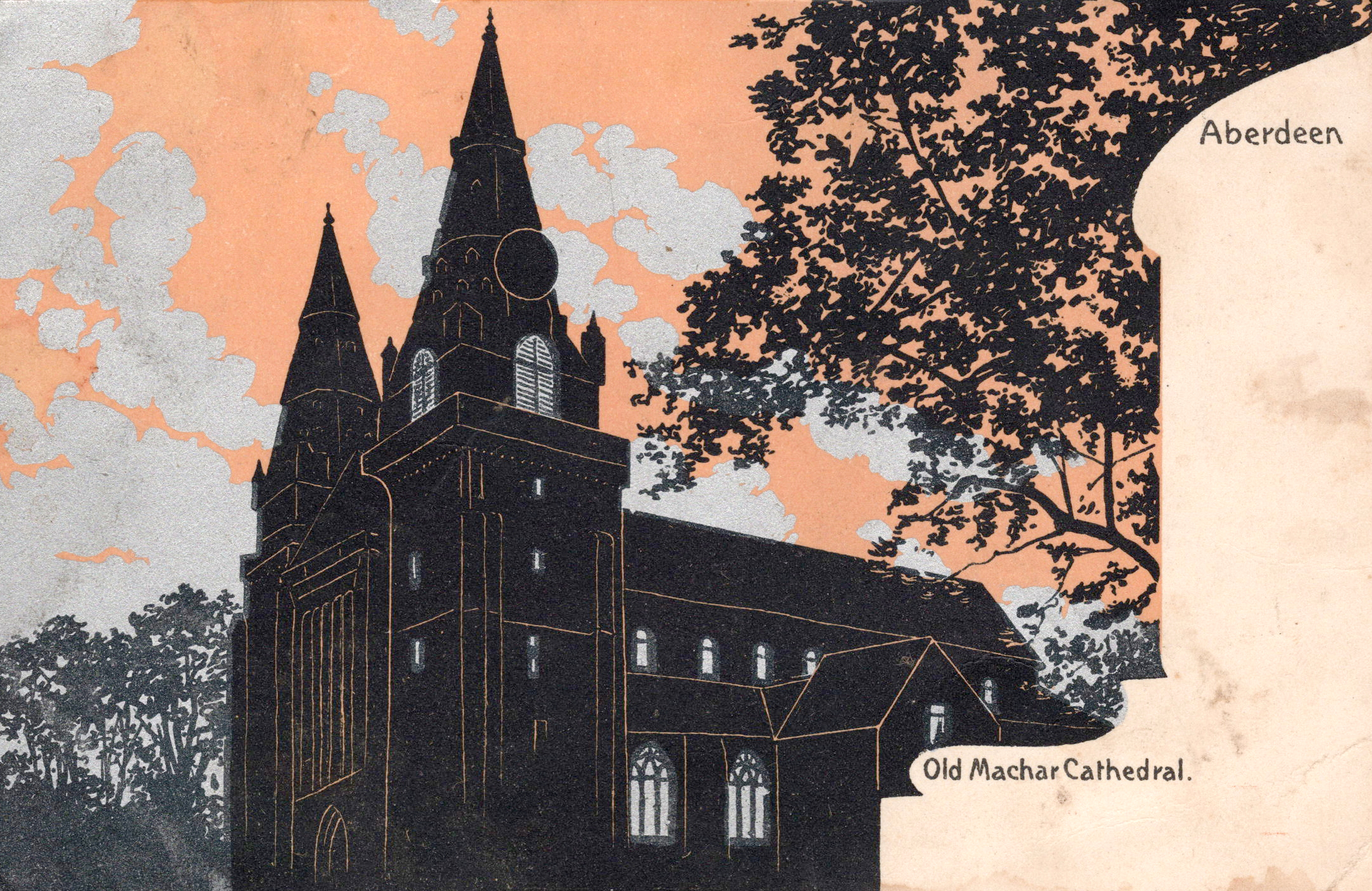 I don’t run into these often. In a decade of postcard-collecting I have stumbled on exactly one, and that was the Old Machar Cathedral seen above. Aberdeen, Scotland.