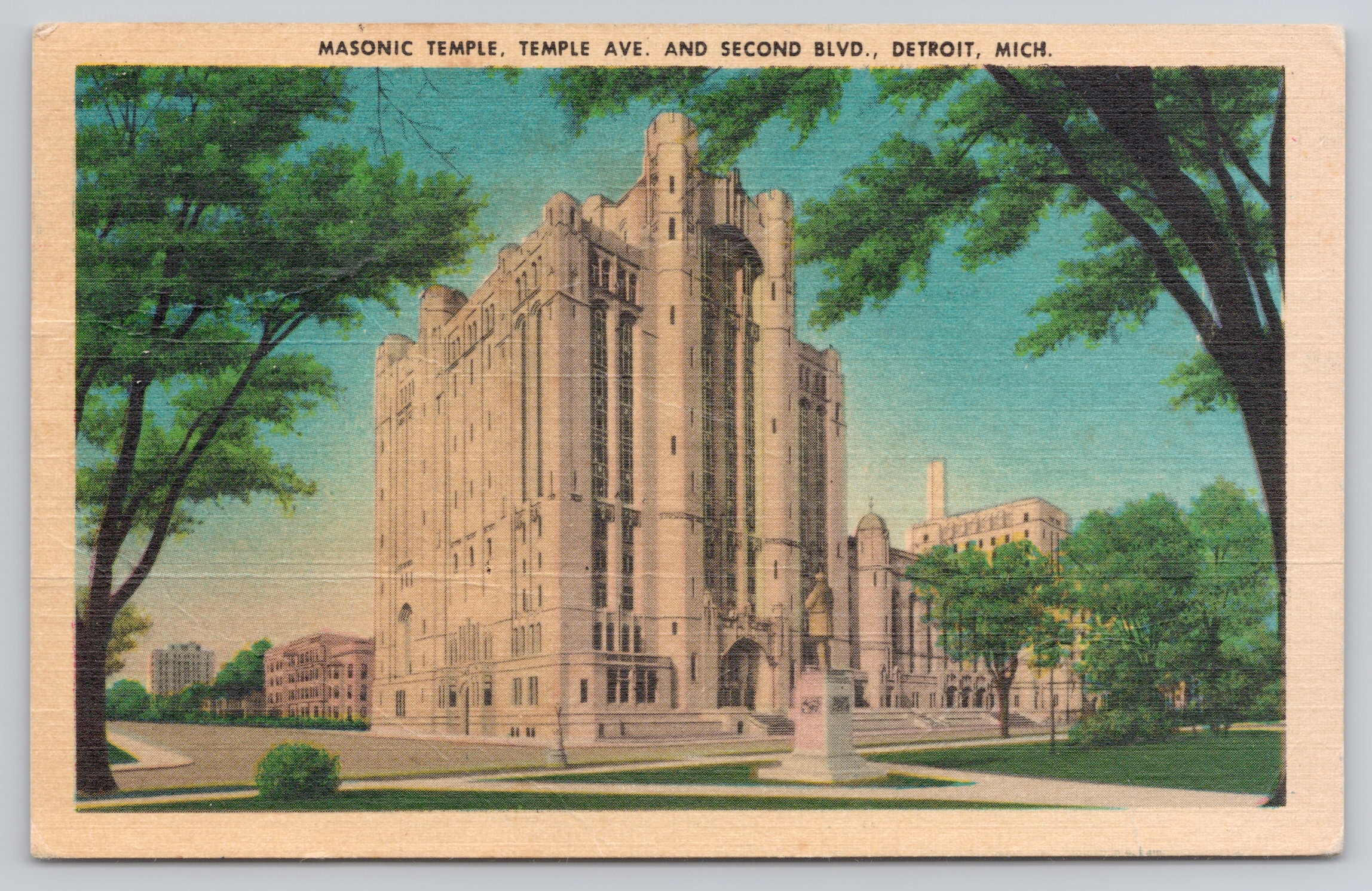 Masonic Temple Temple Ave. and Second Blvd., Detroit, Michigan Postcard 28 February 2026 $5.00 1 in stock Masonic Temple Temple Ave. and Second Blvd., Detroit, Michigan Postcard quantity Add to cart Buy with SKU: 250 Categories: Postcards, USA Description Additional information Description Masonic Temple Temple Ave. and Second Blvd., Detroit, Michigan Postcard Additional information Weight 0.08 kg Related products Knappogue Castle by Night Co. Clare Ireland Postcard $5.00 Add to cart Postcard Ontario Canada Church Altar CYKO RPPC 1904-1920s $25.00 Add to cart Postcard Water Frame Platt Bros. Oldham $5.00 Add to cart Postcard Banff Alberta Pronghorn “Antelopes” RPPC 1920s $24.00 Add to cart
