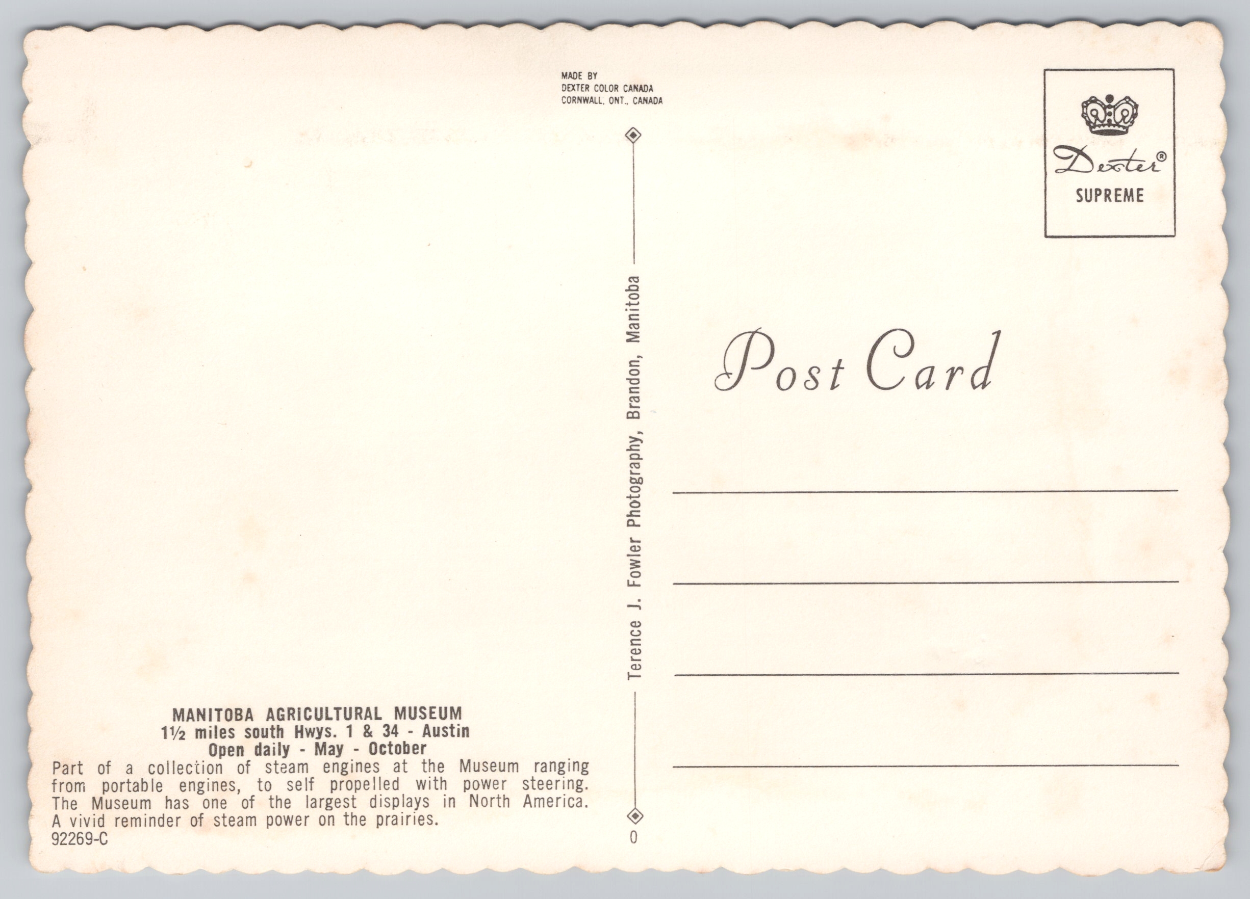 Memories of the Past Tractors Manitoba Agricultural Museum Dexter Color Postcard