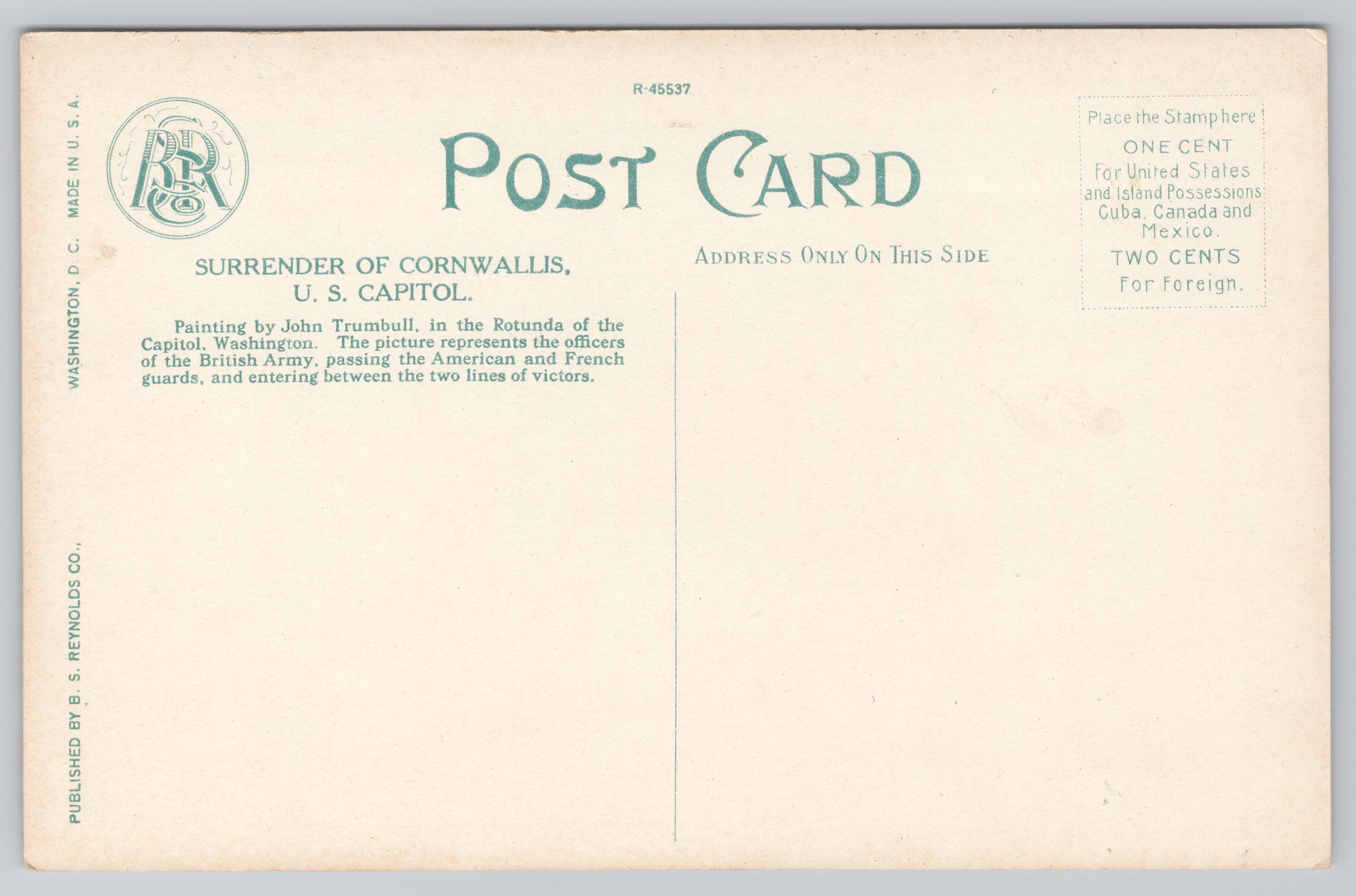 Surrender of Cornwallis U.S. Capitol Rotunda of the Capitol Washington Postcard 28 February 2026 $9.00 1 in stock Surrender of Cornwallis U.S. Capitol Rotunda of the Capitol Washington Postcard quantity Add to cart Buy with SKU: 269 Categories: Art, Postcards, USA Description Additional information Description Surrender of Cornwallis U.S. Capitol Rotunda of the Capitol Washington Postcard Additional information Weight 0.08 kg Related products Postcard Warwick Castle and the River Avon from the Bridge $5.00 Add to cart Stratford-Upon-Avon Holy Trinity Church, Shakespeare’s Birthplace, Etc. Postcard $5.00 Add to cart Postcard Sponge Market, Nassau, Bahamas $12.00 Add to cart Shap Wells Hotel, Cumbria Near Penrith England Postcard $5.00 Add to cart