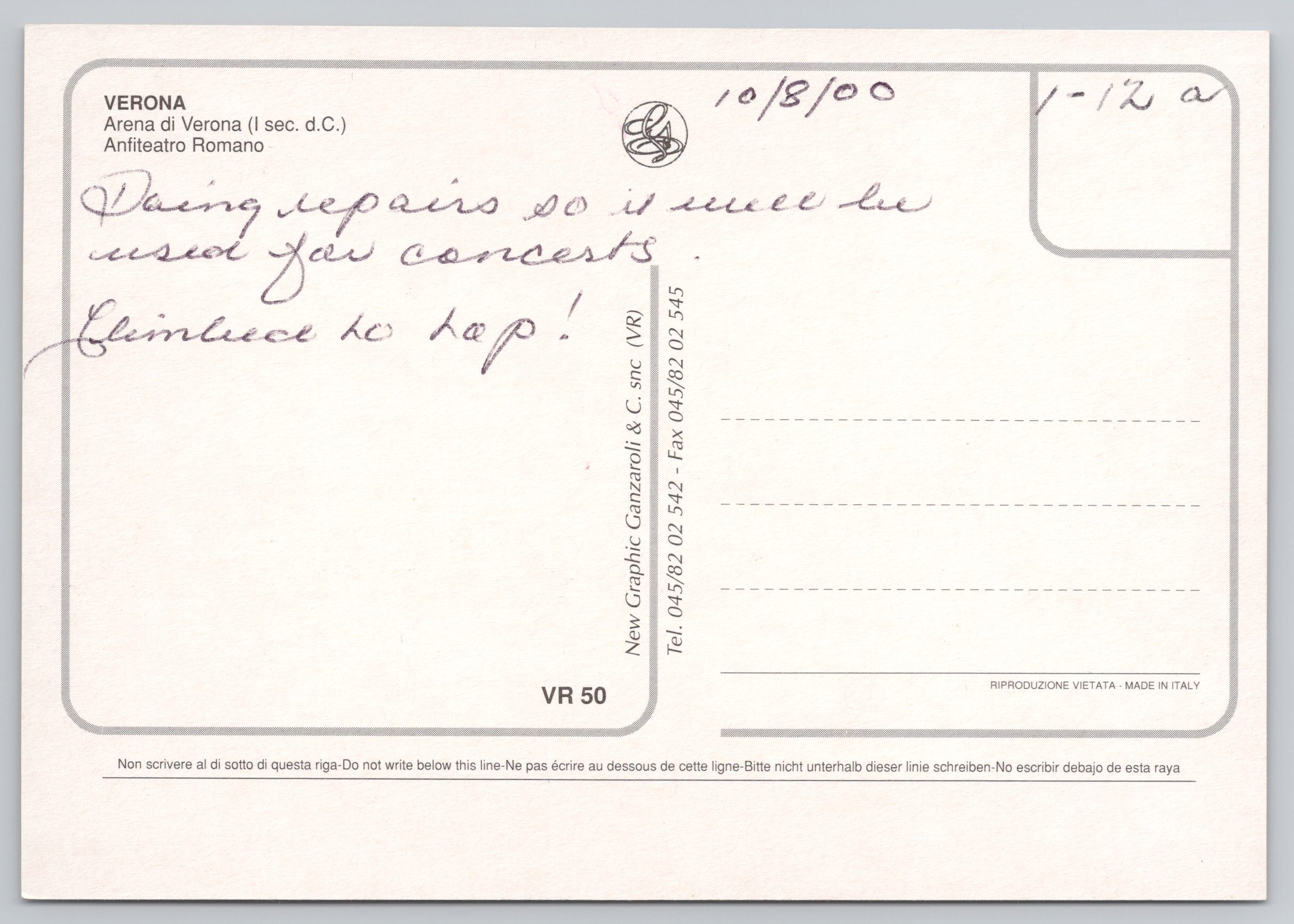 Verona Arena Roman Amphitheatre Italy Postcard 31 January 2026 $5.00 1 in stock Verona Arena Roman Amphitheatre Italy Postcard quantity Add to cart Buy with SKU: 061 Categories: International, Italy, Postcards Tags: italy, postcard, Verona Description Additional information Description Verona Arena Roman Amphitheatre Italy Postcard Additional information Weight 0.08 kg Related products St. Joseph Baby Jesus Postcard $5.00 Add to cart Switzerland, Rigibahn, Schnurtobelbrucke und Pilatus Postcard $5.00 Add to cart The French Riviera La Promenade des Anglais Postcard $10.00 Add to cart Moat Garden and Norman Gate Windsor Castle Postcard $5.00 Add to cart